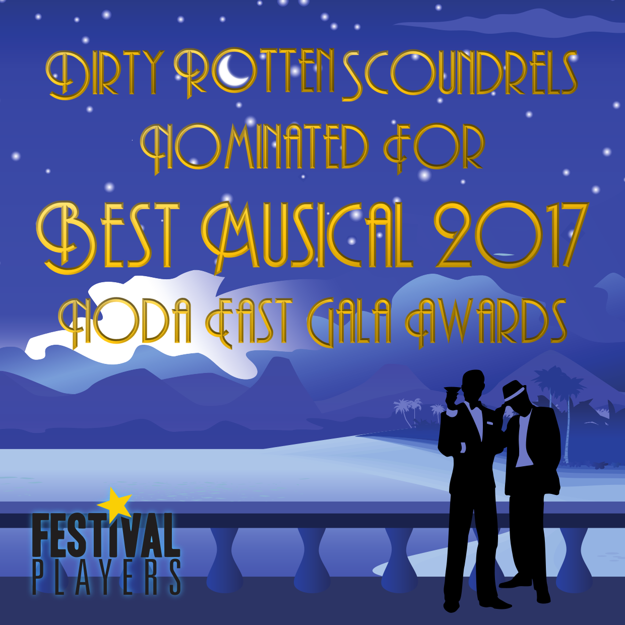 We are very proud that our 2017 main show ‘Dirty Rotten Scoundrels’ has been nominated for ‘Best Musical 2017’ at this year’s NODA East Gala Awards.